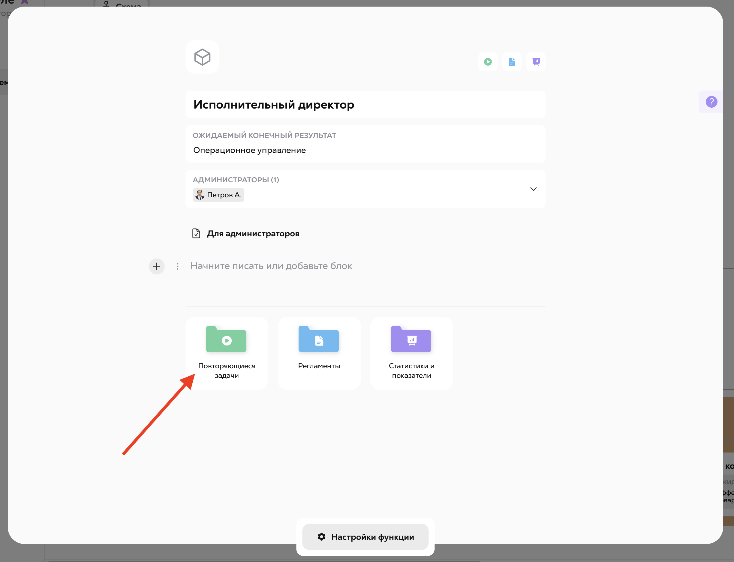Если вы являетесь "Администратором" функции, вы можете создавать и редактировать повторяющиеся задачи на своей функции и на ее подфункциях.