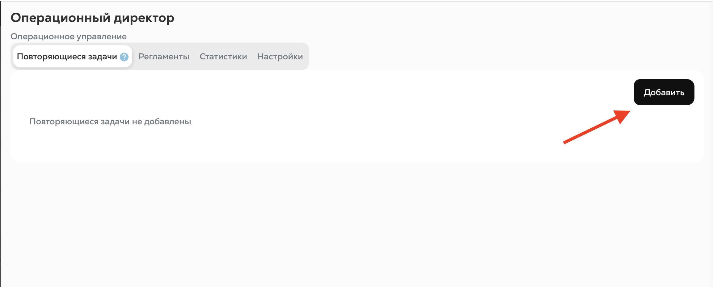 4. Чтобы добавить новую повторяющуюся задачу, нажмите кнопку “Добавить” справа вверху и выберите, для кого будет создаваться задача: Для Администратора или Для исполнителей (если они есть на этой функции):
